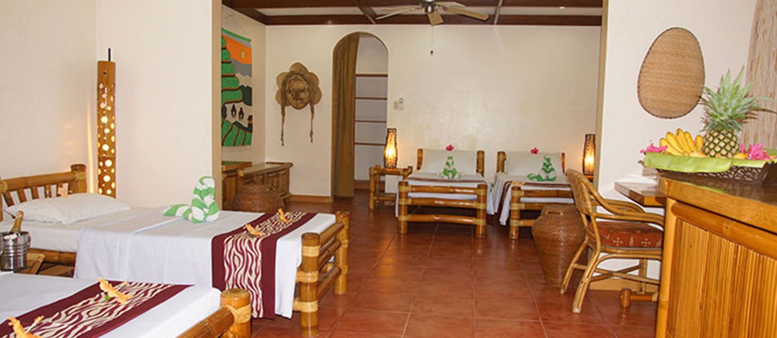 The Dolphin Family room is the largest room in Pura Vida featuring one (1) queen size bed and two (2) single beds with a small partition in between. The room is on the ground floor underneath the Suite and is therefore also wheelchair accessible. A natively furnished terrace offers a soothing garden view. The room comes with split-type air-conditioning, mini-bar refrigerator, in-room safe, complimentary water carafe, complimentary coffee and tea making facility, and flat screen cable TV. The bathroom features hot & cold shower and can be accessed from both sleeping areas.