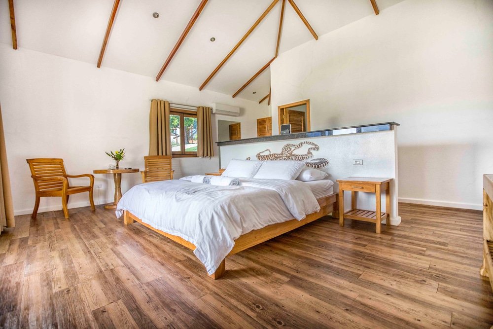 Upgrade your stay in one of our five spacious Bay View Lofts, perfect for couples. These 52 m² suites feature vaulted ceilings, large windows, and an open, airy design that captures the island’s atmosphere. Ideal for up to two adults and one child (under four years old, sharing a bed with parents).